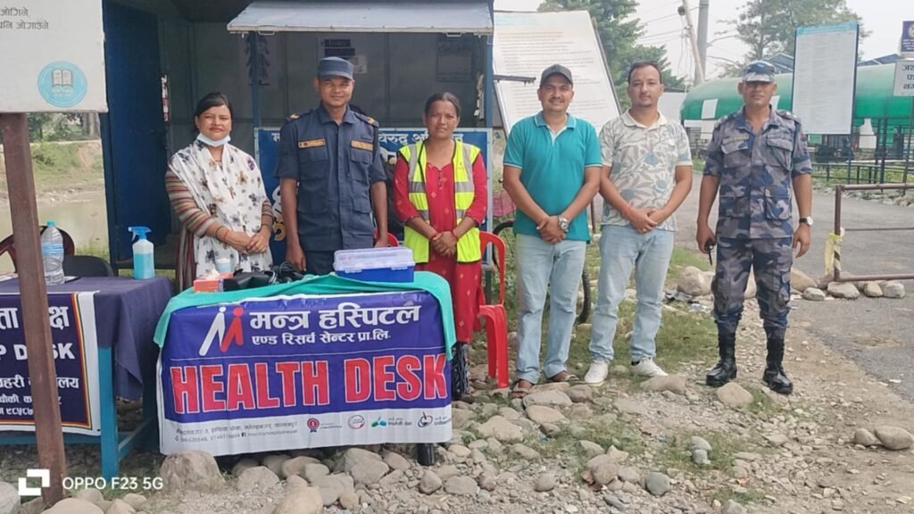 महेन्द्रनगर । मन्त्र हस्पिटल एण्ड रिसर्च सेन्टरले हेल्थ डेक्स संचालनमा ल्याएको छ । नजिकिदै गरेको दशै,तिहार तथा छठ पर्वलाई लक्षित गर्दै हस्पिटले बुधवार देखि कञ्चनपुरको पश्चिमी सिमा नाका गड्डाचौकीमा हेल्थ डेक्स संञ्चालनमा ल्याएको हो ।