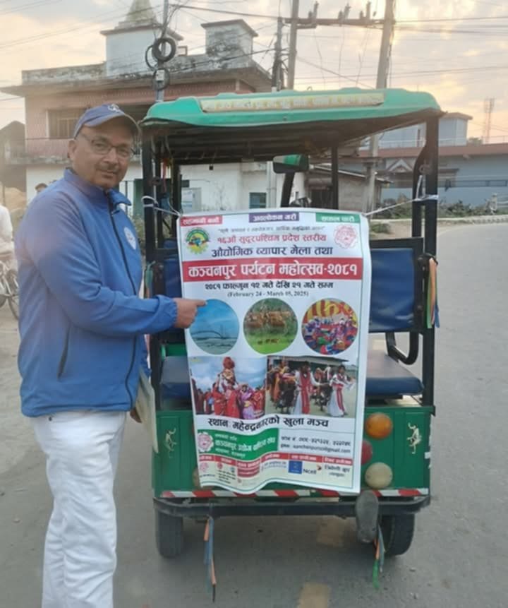 कञ्चनपुर । १२ फागुनदेखि कञ्चनपुर महेन्द्रनगर खुला मञ्चमा सुदूरपश्चिम प्रदेश स्तरीय औद्योगिक व्यापार मेला तथा कञ्चनपुर पर्यटन महोत्सवको तयारी अन्तिम चरणमा पुगेको छ । कञ्चनपुर उद्योग वाणिज्य संघको आयोजनामा भीमदत्त नगरपालिका ४ महेन्द्रनगर खुला मञ्चमा सुदूरपश्चिम प्रदेश स्तरीय औद्योगिक व्यापार मेला तथा कञ्चनपुर पर्यटन महोत्सव ०८१ हुने महोत्सवको तयारी अन्तिम चरणमा पुगेको हो ।